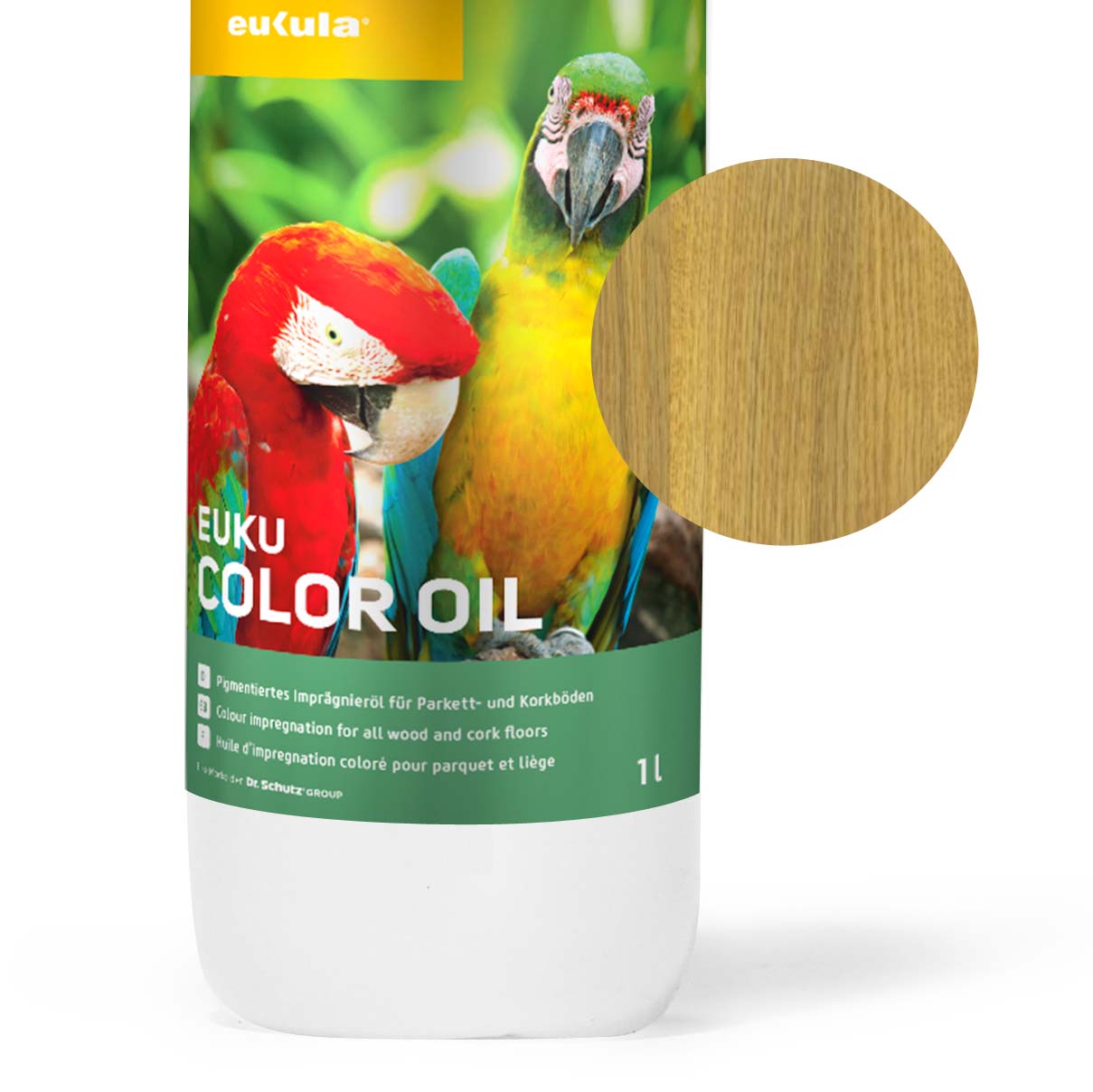 Euku Coloröle haben einen Festkörperanteil von 100%, sind lösemittel- und kobaltfrei. Das Euku Color Oil FS ist eine naturölbasierte, (hier: pinienfarben) pigmentierte Tiefenimprägnierung für abgeschliffene Holz-, Kork- und Parkettböden im Innenbereich. Es ist für Fußbodenheizungen geeignet und nicht schichtbildend. Das Holz behält seinen offenporigen Charakter. Das Öl kann mit dem optionalen Zusatz Euku Master FS (auf Anfrage erhältlich) versetzt werden, um Trocknung und Beständigkeit über das schon sehr gute Maß hinaus noch weiter zu verbessern.