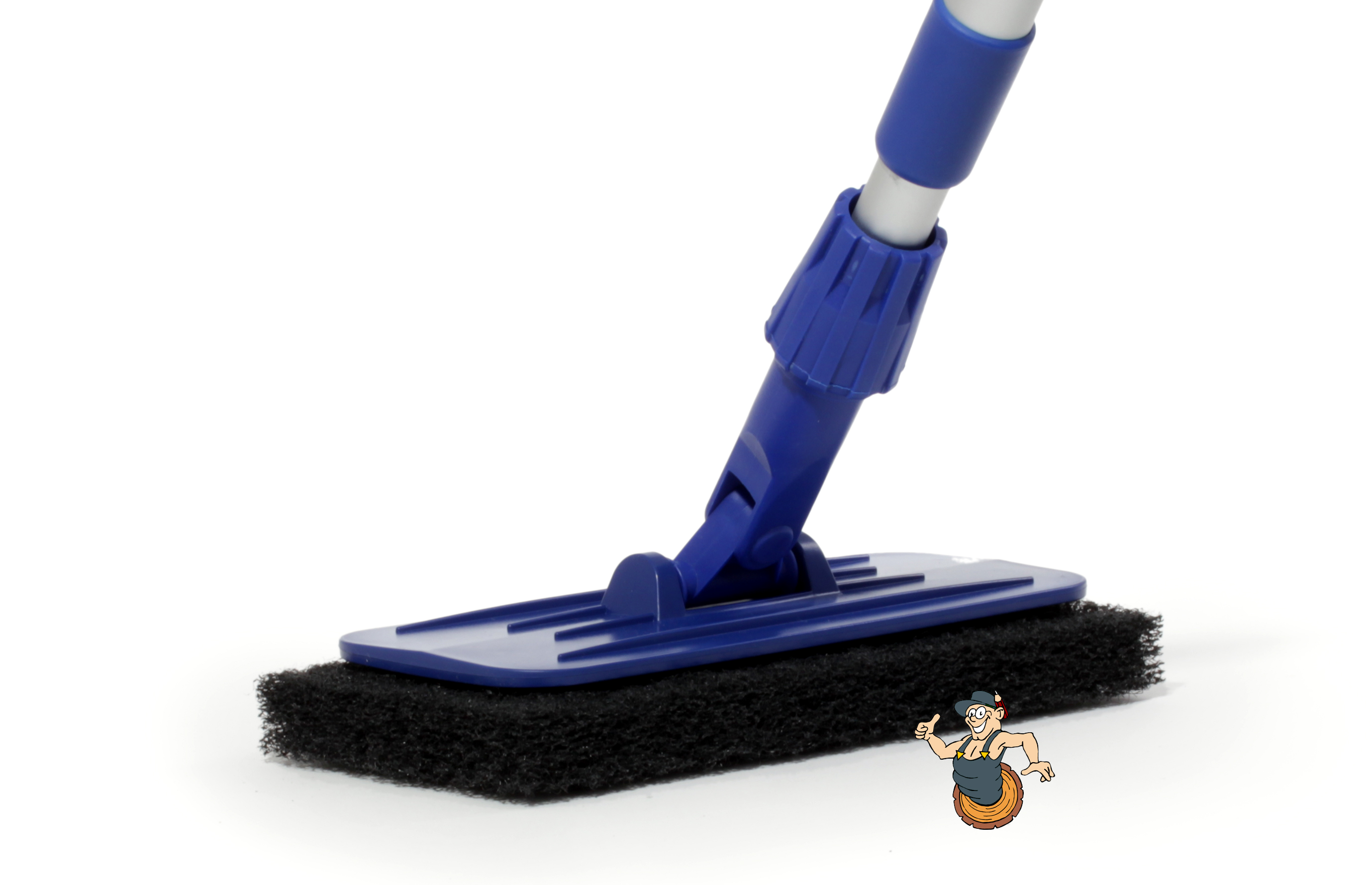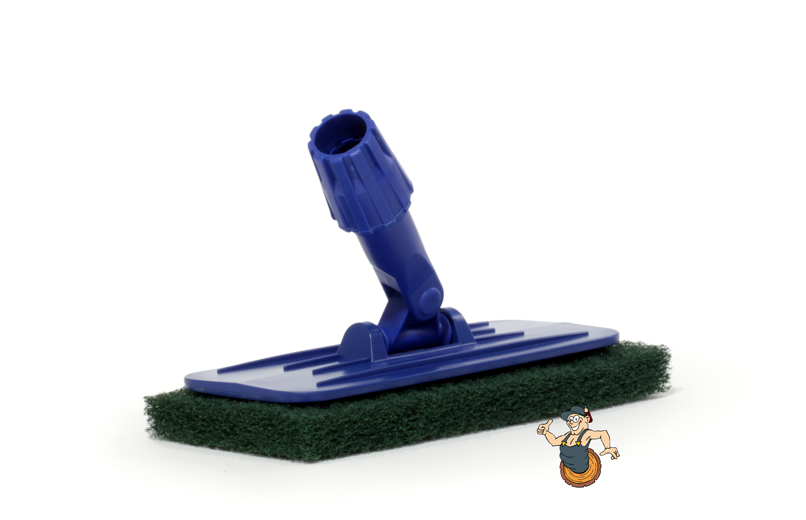 Der Padhalter für Teleskopstiel ermöglicht den effektiven und zweckmäßigen Einsatz der großen Pads in den Maßen 250 mm x 115 mm. Durch das Doppelgelenk ist der Padhalter in jede Richtung beweglich und ermöglicht die einfache Reinigung auch schwer zugänglicher Bereiche. Die Befestigung der Pads erfolgt zuverlässig über eine Noppenfläche nach dem Klettprinzip.